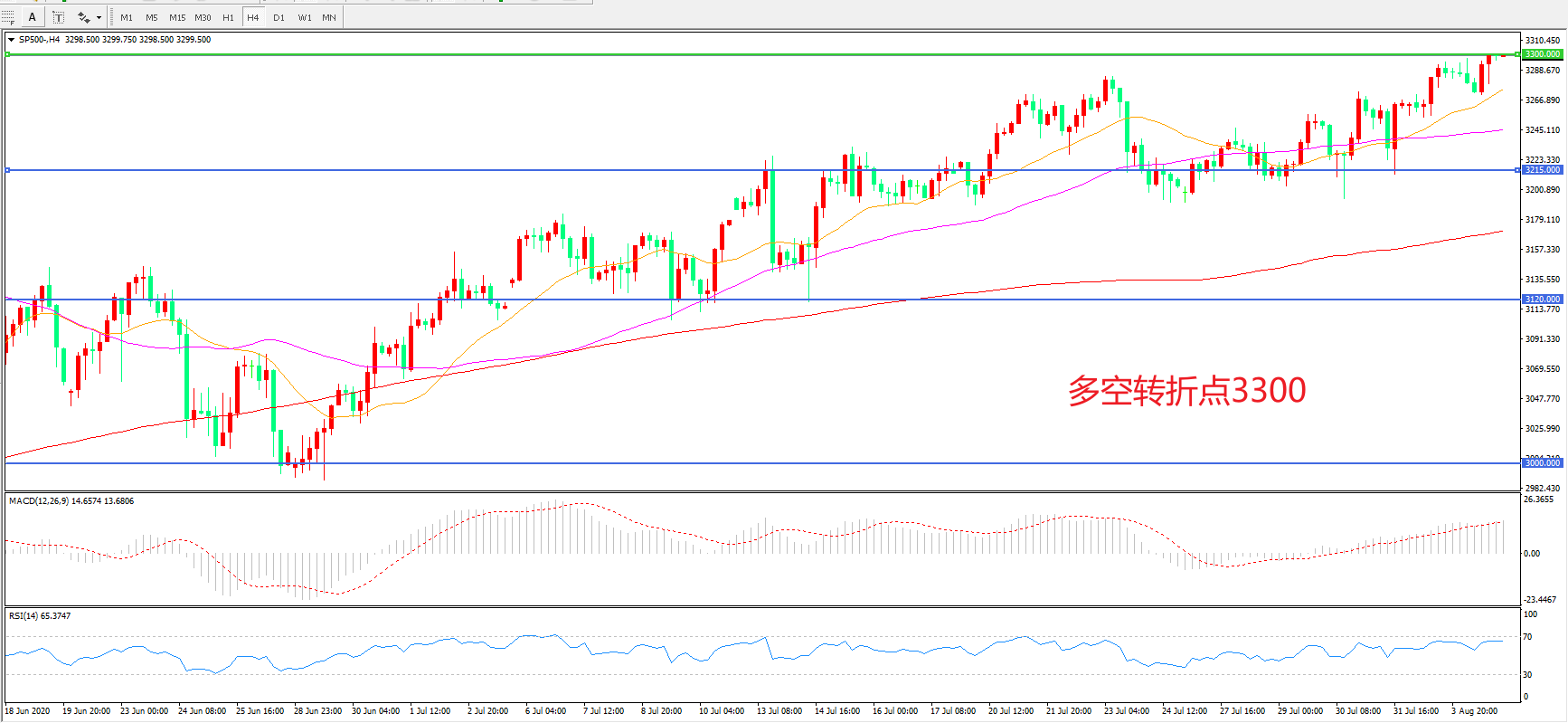 多空转折点:3300.00