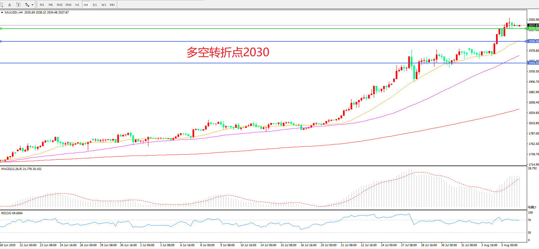备选策略:在2030.00之下看跌,目标2000.00 1950.00