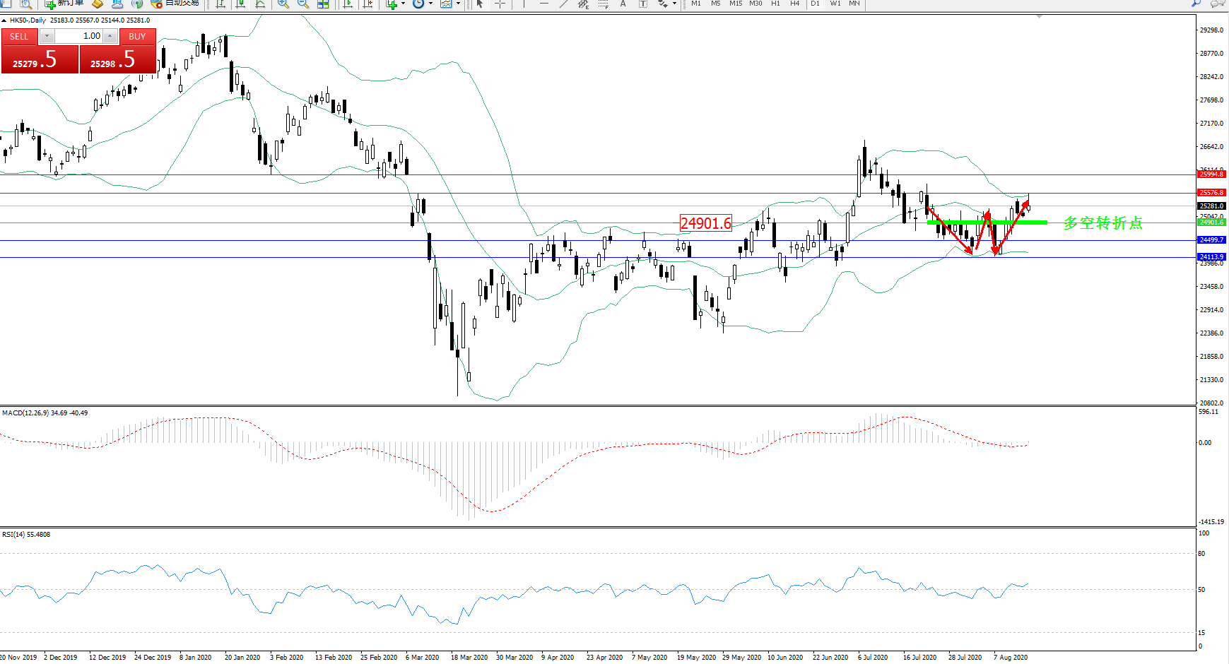 恒指HK50 ——日K线图显示: