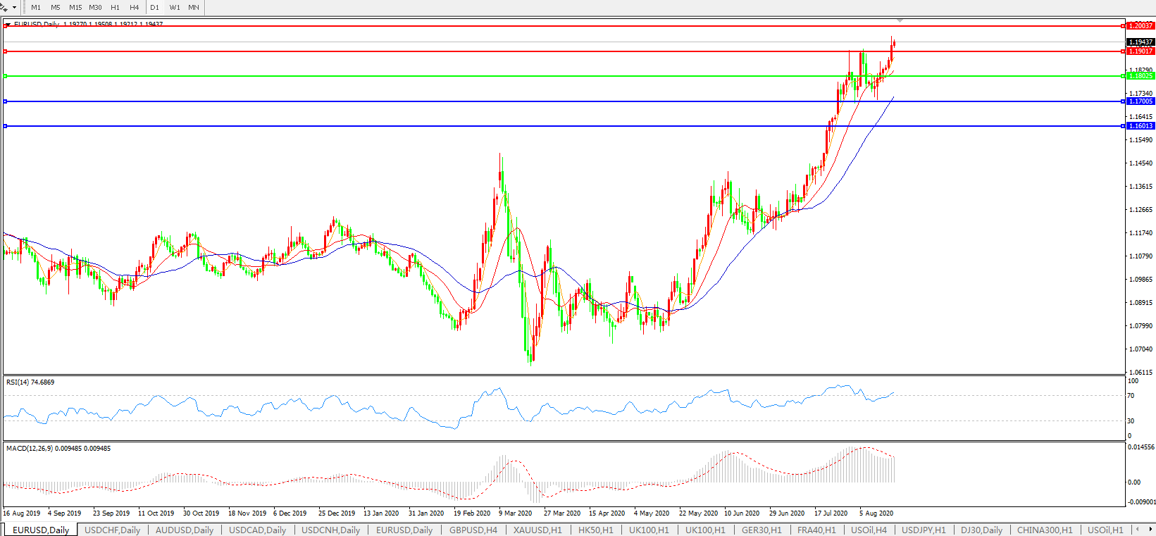 交易策略:1.1800上方看涨,目标1.1900、1.2000