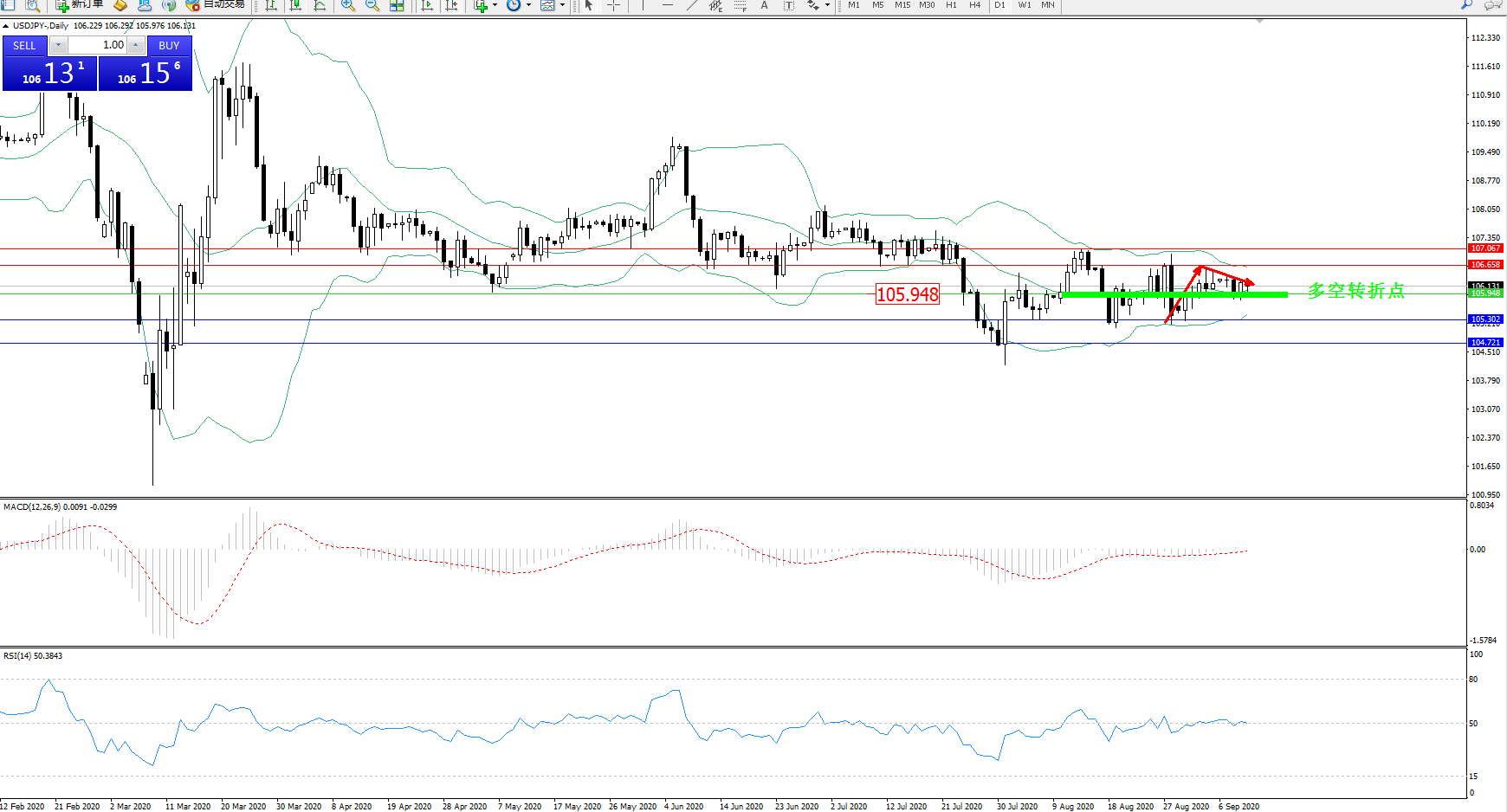 多空转折点:105.948