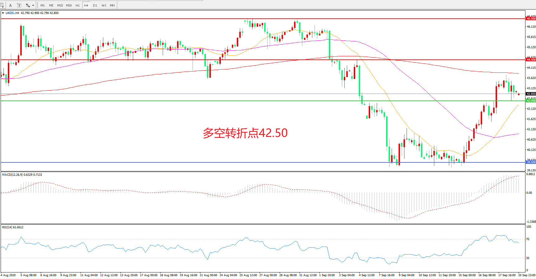 交易策略: 在42.50之上看涨,目标44.50 46.50