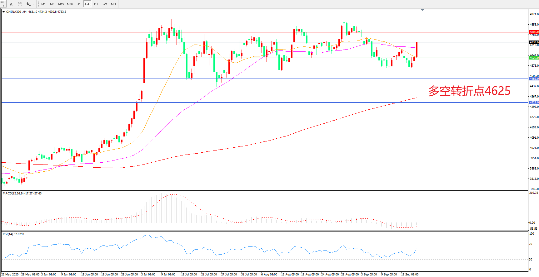 多空转折点:4625.00