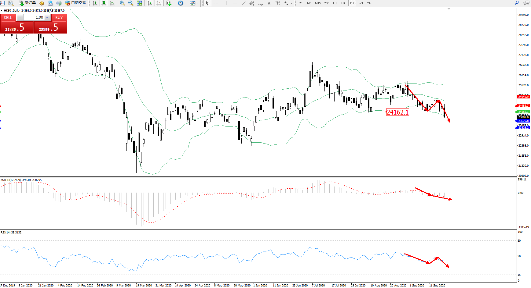 恒指HK50 ——日K线图显示: