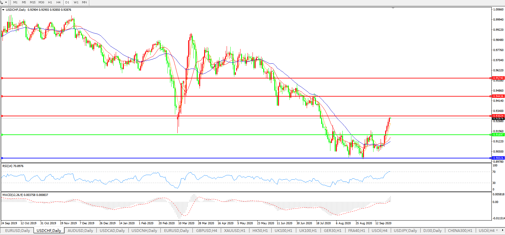 交易策略:0.9170上方看涨,目标0.9300、0.9440