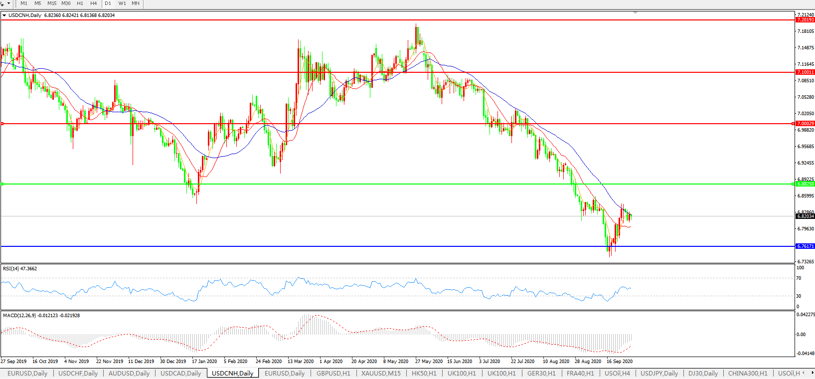 人民币兑美元即期周二收盘缩量小跌,日内维持在6.82附近窄幅整理,中间价则小升结束六连跌;交易员称,美国大选的不确定性或令美指继续维持偏强走势;他们并指出,国庆长假在即,市场交投意愿下降;国内长假期间美国有多项经济数据公布自营盘多不愿持头寸过节;美国众议院议长佩洛希(Nancy Pelosi)周一表示,民主党议员将公布一项2.2万亿美元的新版新冠疫情援助法案,她说此一新法案是降低经济援助成本的妥协举措; 建行金融市场部汇率交易团队最新观点认为,考虑到欧美疫情的二次反复、美国大选的高度不确定性,美元指数很可能迎来一波反弹;中信证券首席宏观分析师明明也称,短期有两个因素不容忽视,一个是美国大选给美元带来的扰动,另一个则是美联储资产负债表扩张的速度;