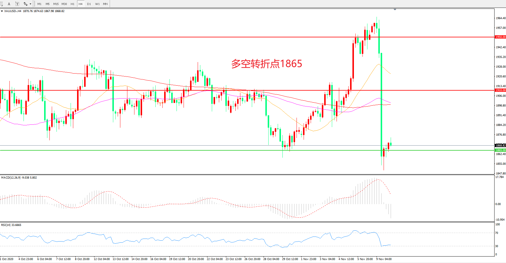 现货黄金XAU/USD 4小时图