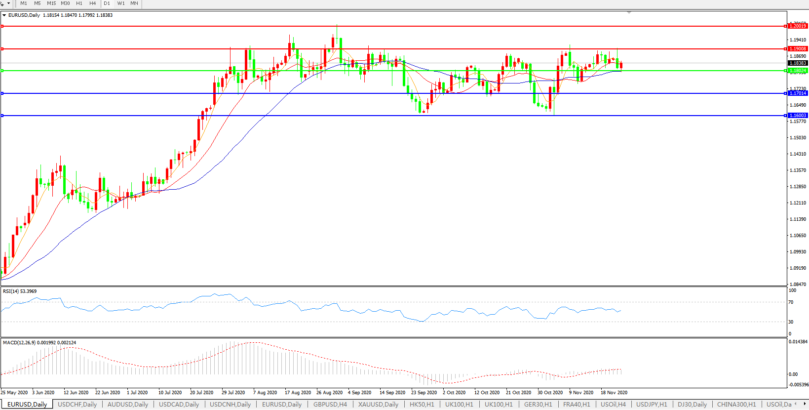 交易策略:1.1800上方看涨,目标1.1900、1.2000
