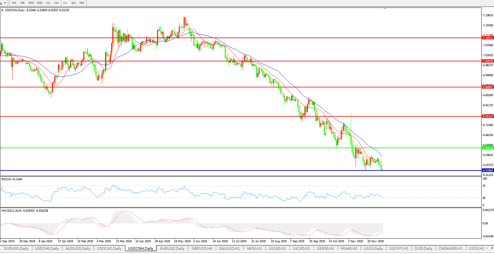 美元兑人民币USDCNH    日线图: