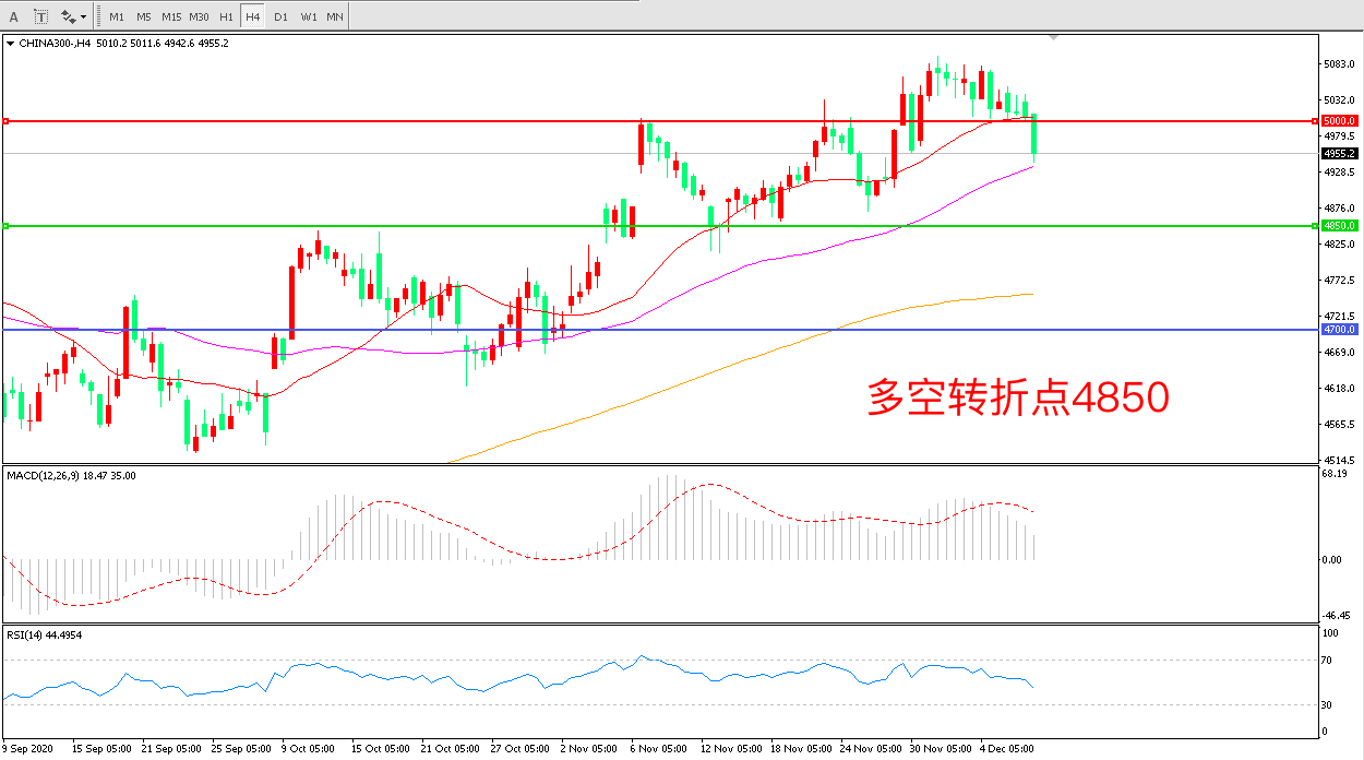 备选策略:在4850.00之下看跌,目标4700.00 4565.00