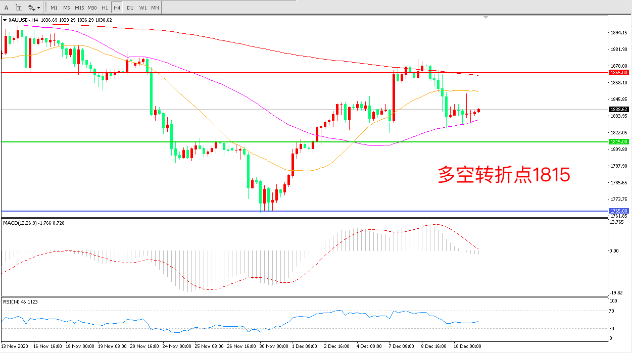 周四(12月10日),现货黄金波动较大,日内一度涨破1850美元整数位,日内较低位反弹超21美元,但美盘开盘后一个半小时回吐全部涨幅转跌,盘中下逼1830美元,最终收报1837.17美元/盎司。从长期来看,避险需求回落可能会给黄金需求带来一些打压,但疫情结束后,全球再通胀预期升温有望在中长期继续支持金价。