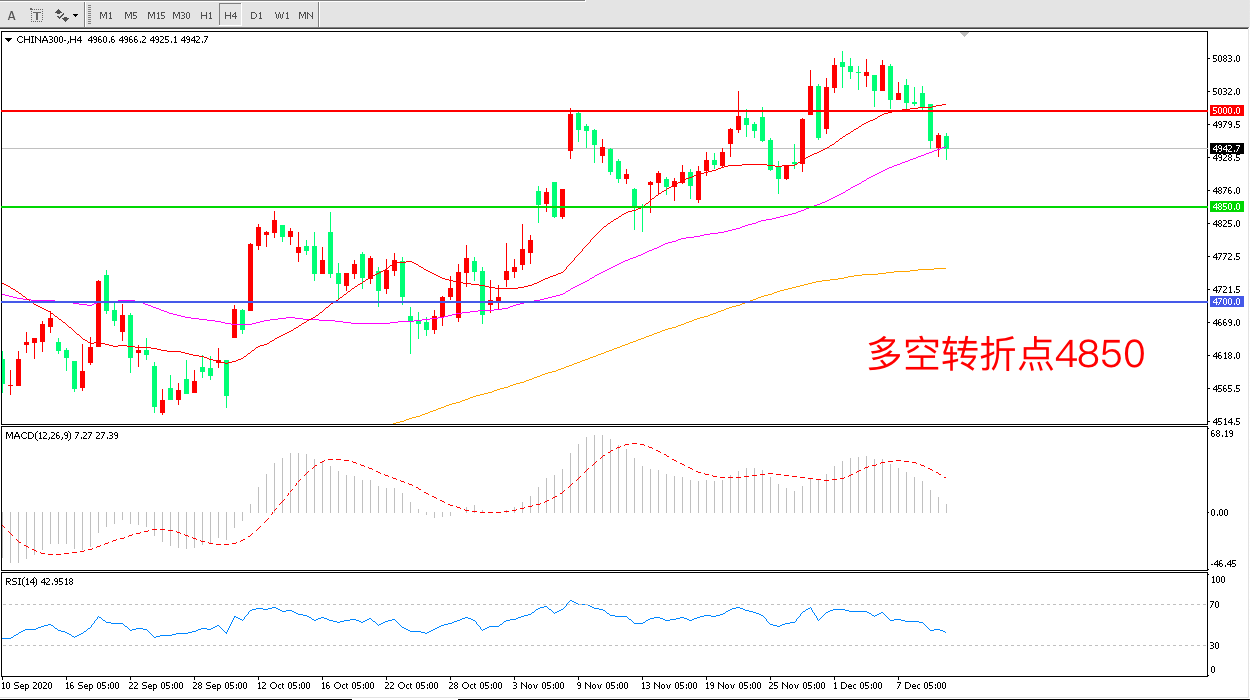 备选策略:在4850.00之下看跌,目标4700.00 4565.00