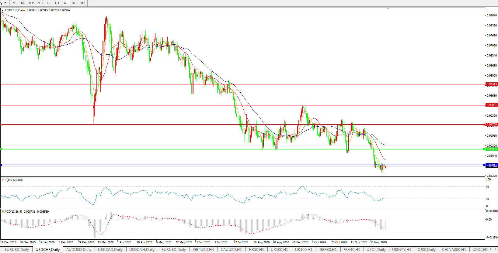 美联储低利率料将持续,美元兑瑞郎弱势整理