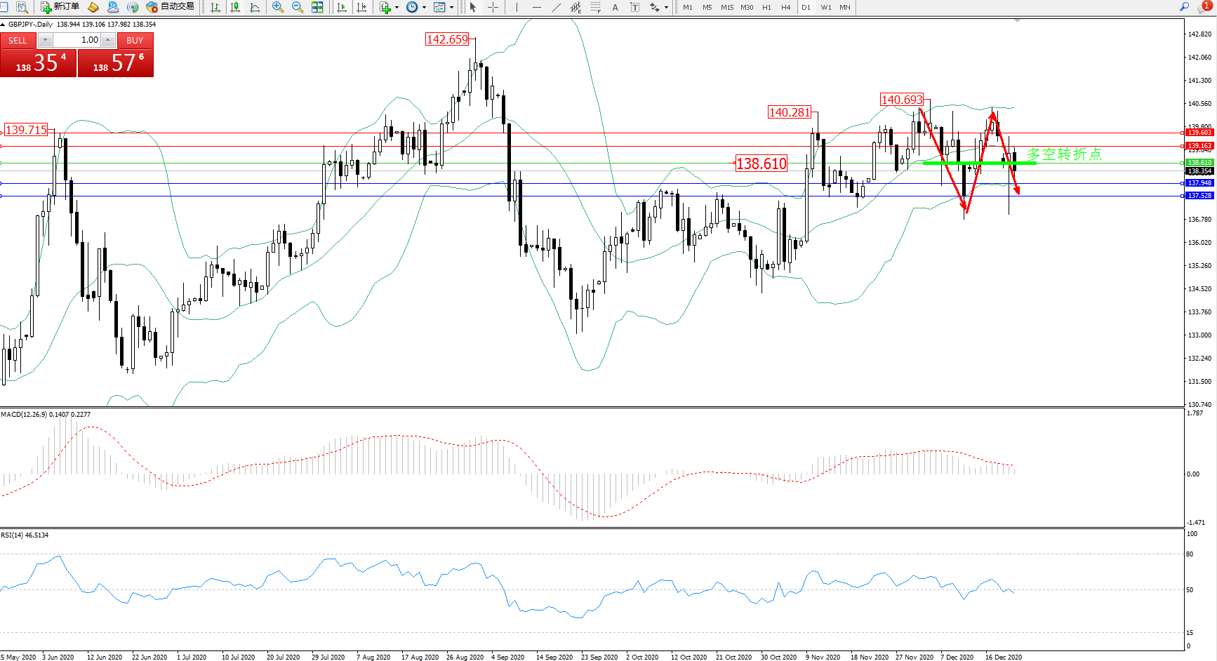 英镑兑日圆处于138.354附近巨震,由于市场此前的乐观消息已经透支了行情空间,因此,眼下即使英国与欧盟之间的谈判达成了最后协议,市场对此的进一步反响也将有限,英国有序脱欧在实质上只是把负面影响最小化的安排,投资者绝不应该将此看作是什么积极正面事件,因为就算达成协议正式脱欧,英国方面仍需要在明年处置其中的各项后继安排,这在疫情影响尚未结束的背景下仍会带来相当多的不确定性影响,英国和欧盟间的贸易谈判在周末仍无进展,令人再度失望;这一负面的进展显然提升了英国经济和英镑的下行风险,降低了年底前可达成退欧协议的希望。