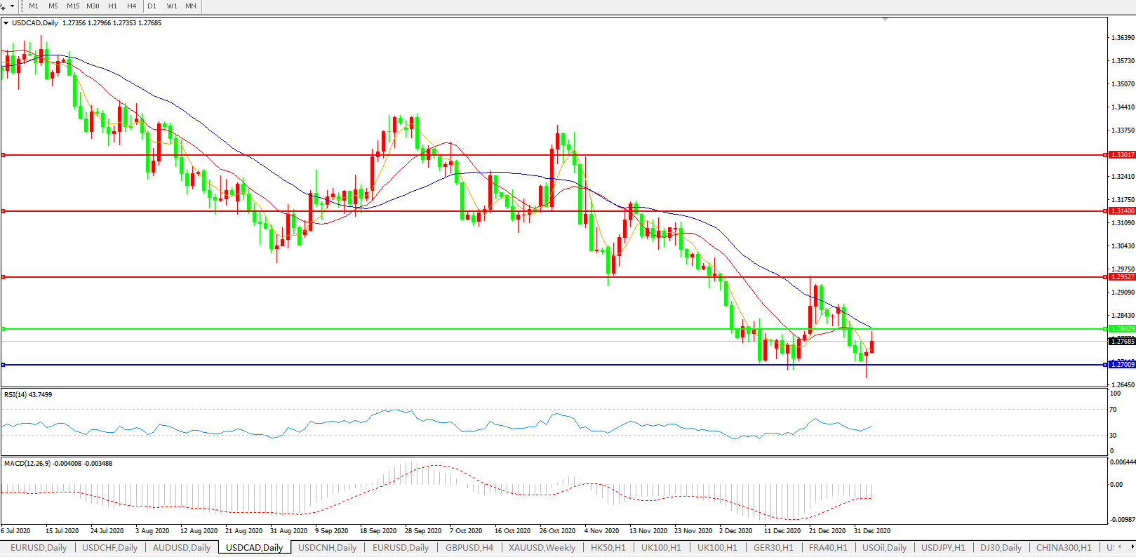 美元兑加元USDCAD    日线图: