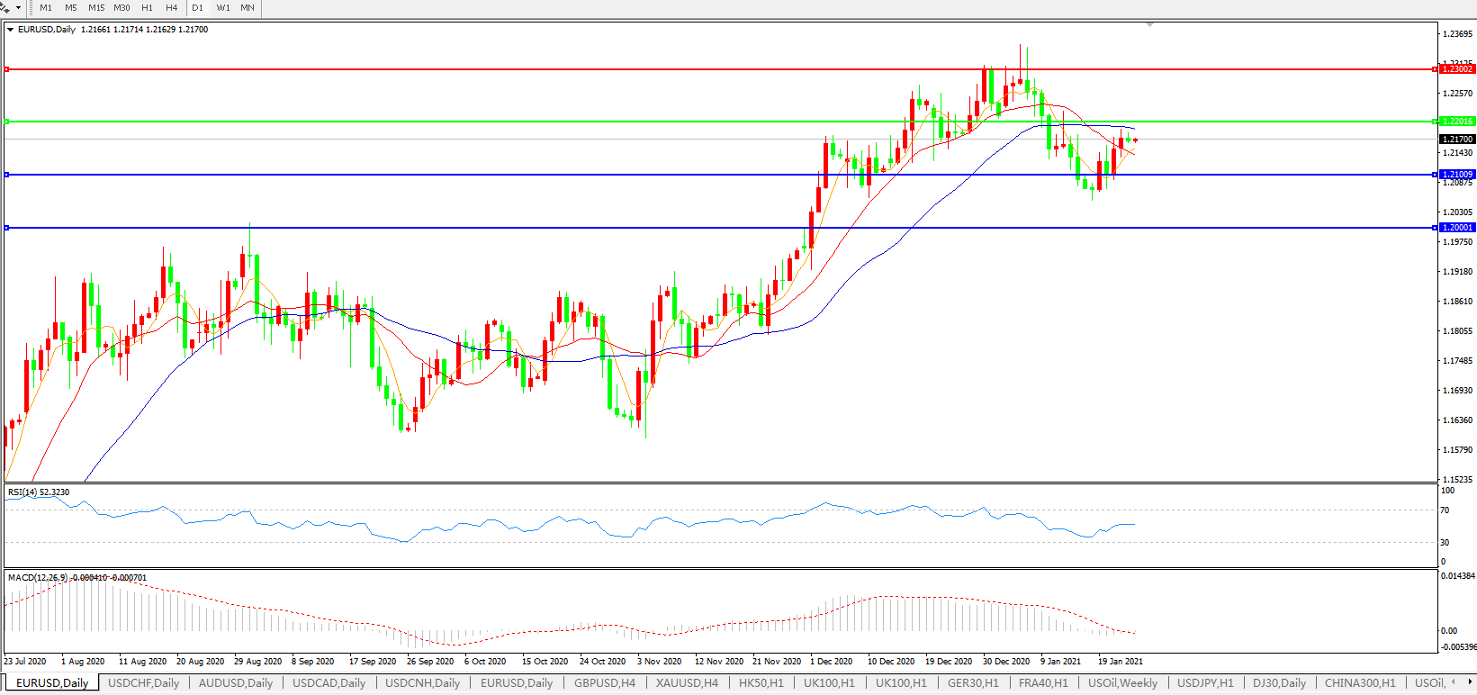 交易策略:1.2200下方看跌,目标1.2100、1.2000