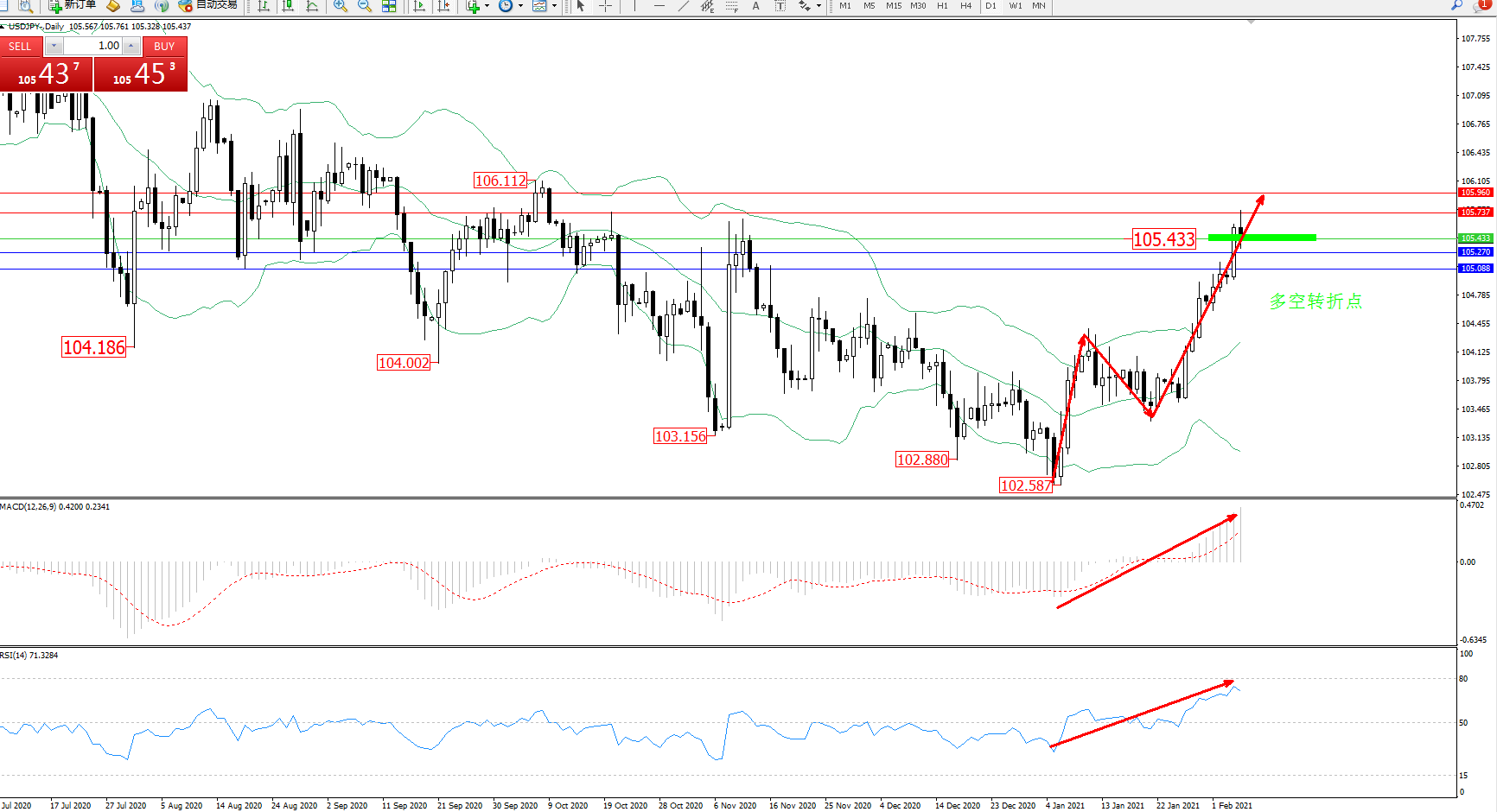 多空转折点:105.433