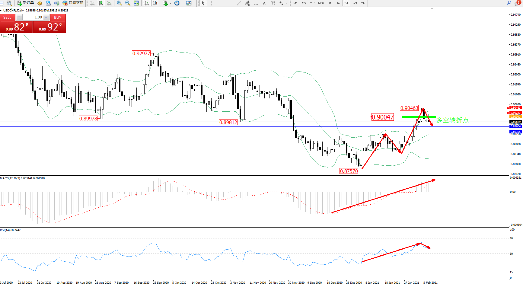 交易策略:0.90047下方看跌,目标0.89604、0.89355