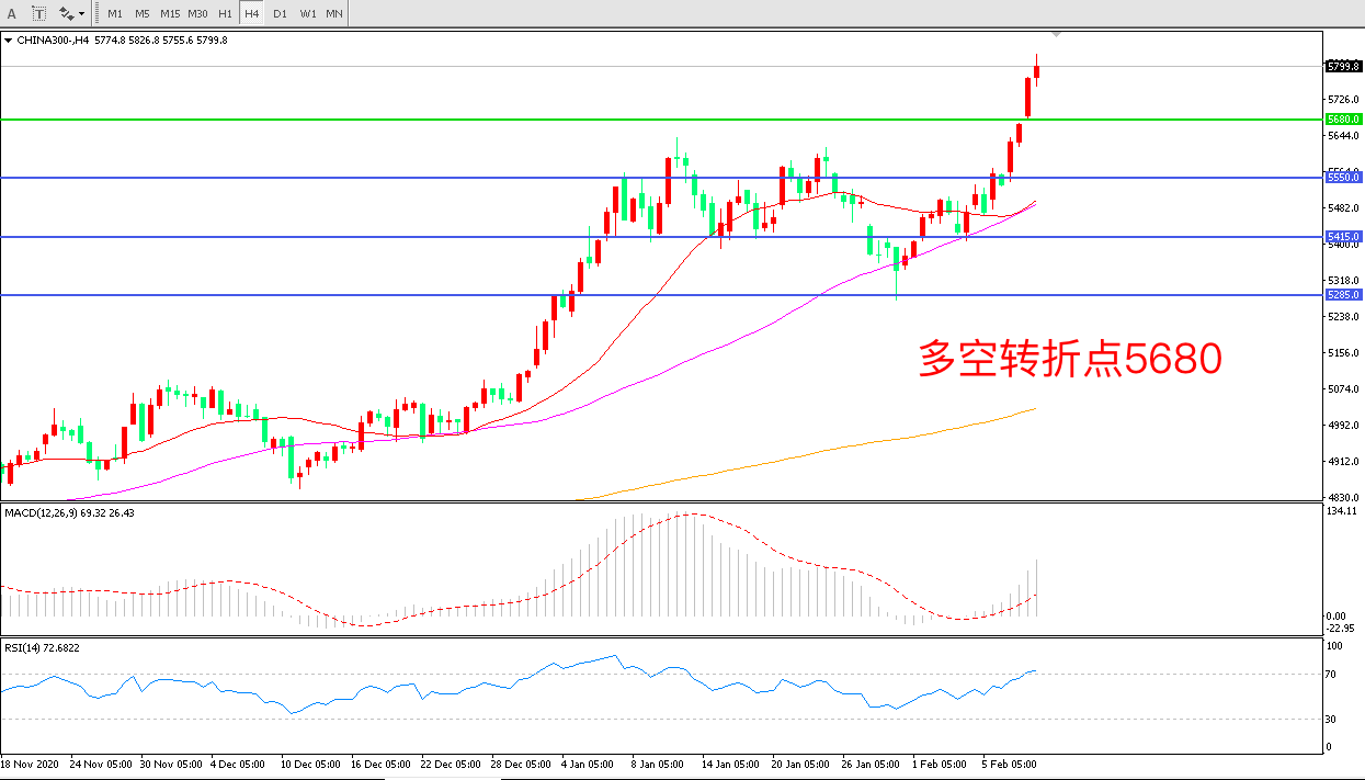 交易策略:在5680.00之上看涨,目标5800.00 5950.00