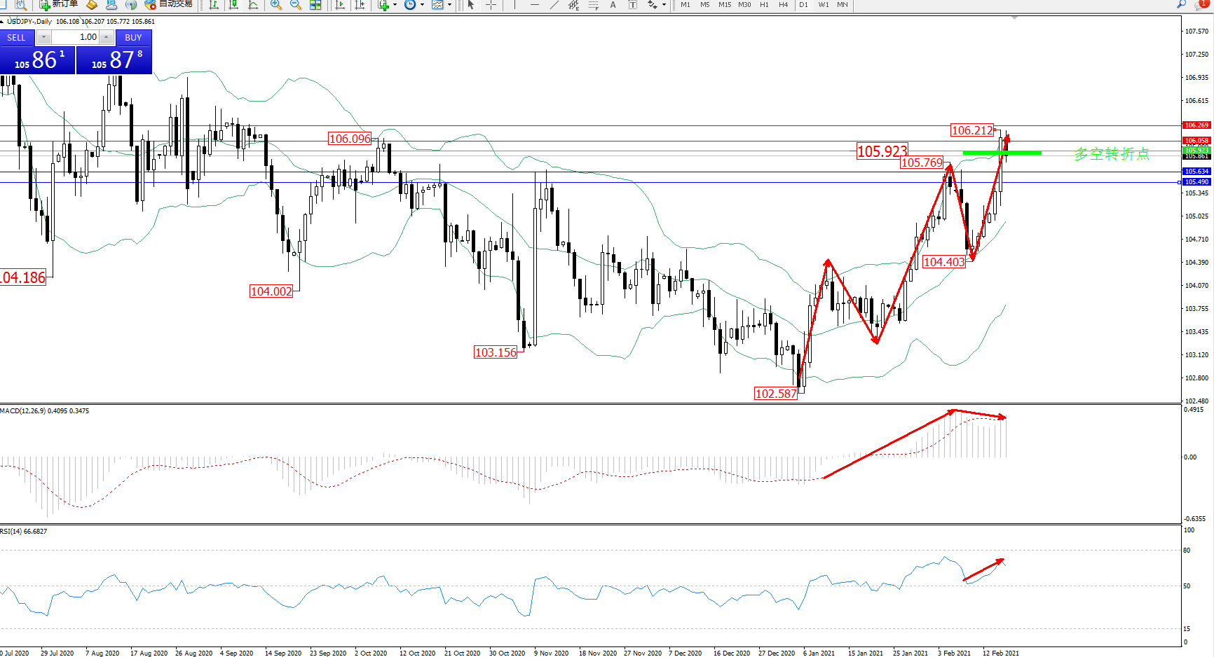 多空转折点:105.923