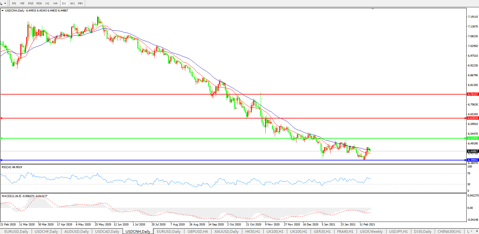 交易策略: 在6.5200之下,看跌,目标价位为6.4000,然后为6.2000。
