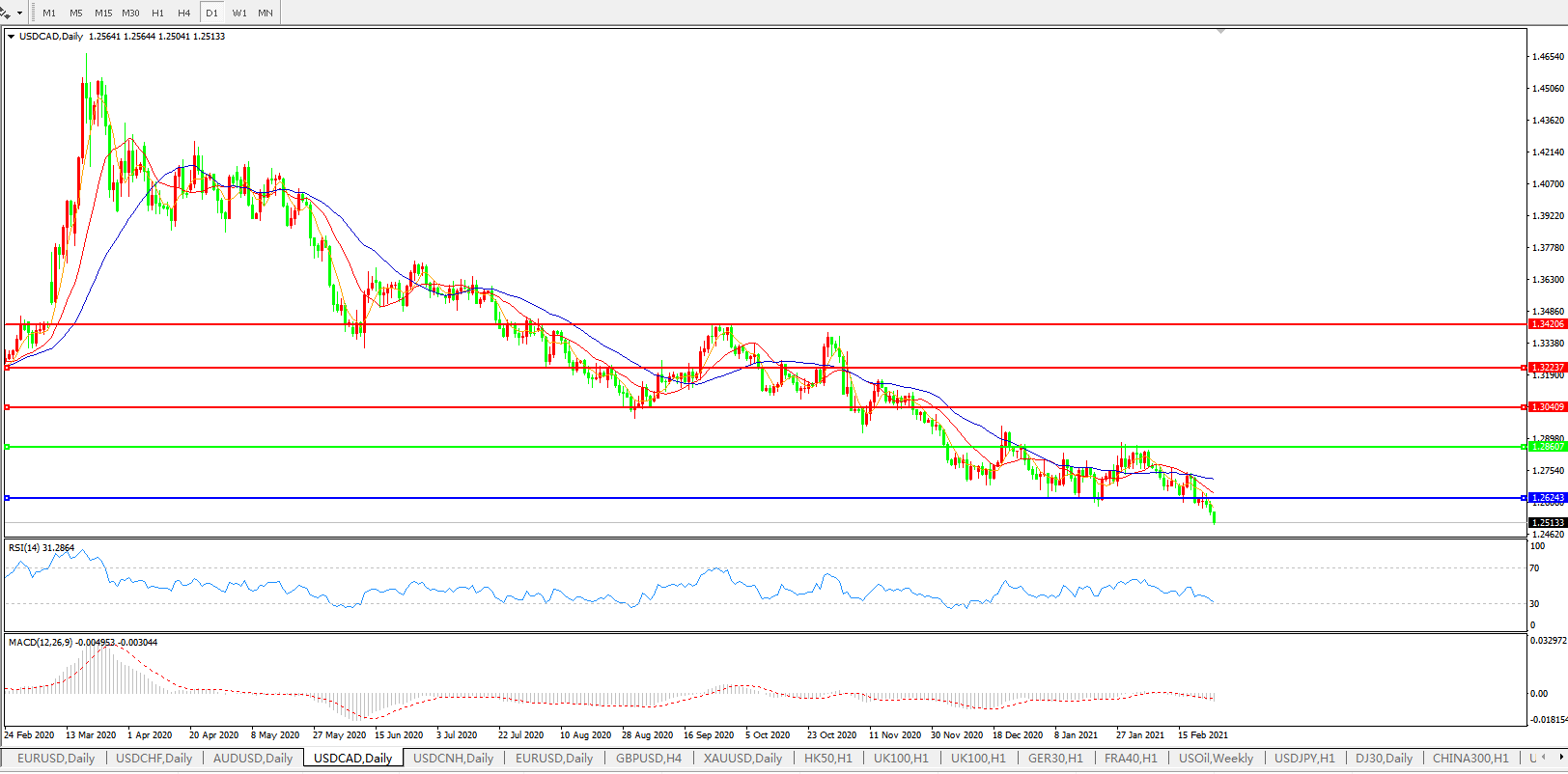 美元兑加元USDCAD    日线图: