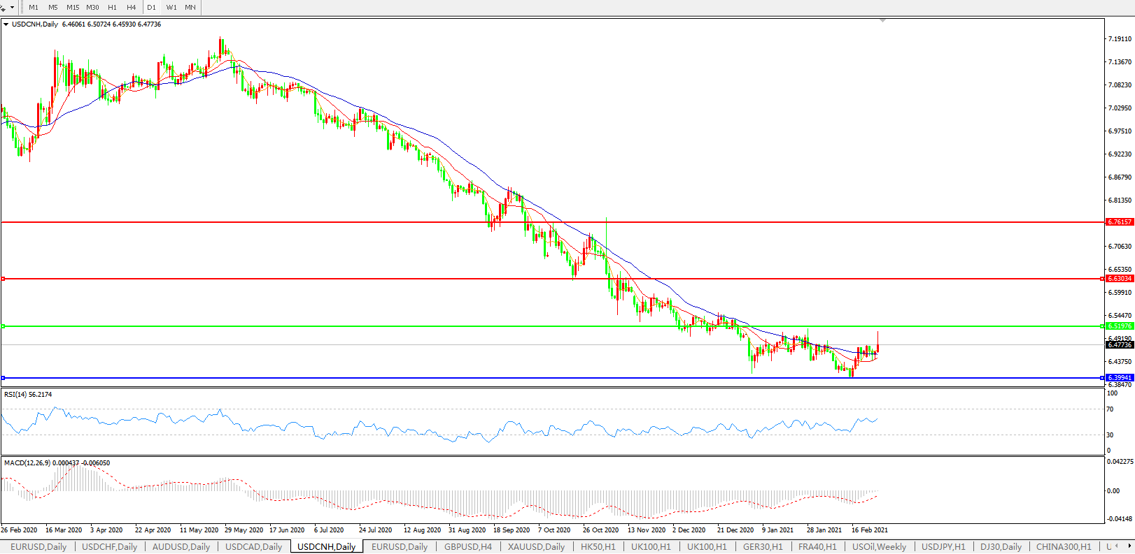 备选策略:在6.5200之上,看涨,目标价位为6.6300,然后为6.7615。