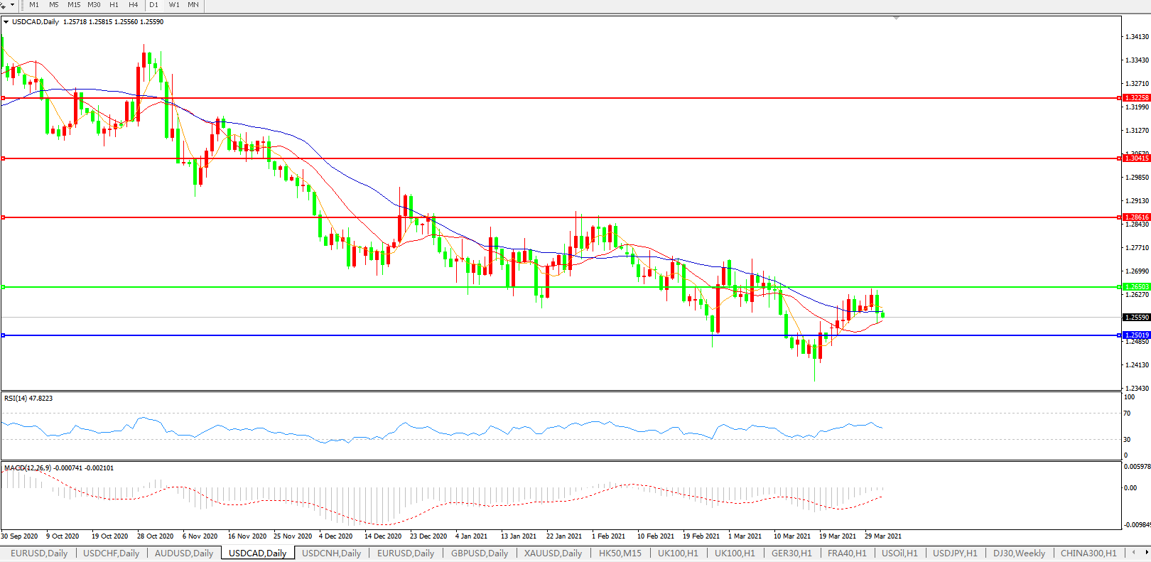 美元兑加元USDCAD 日线图: