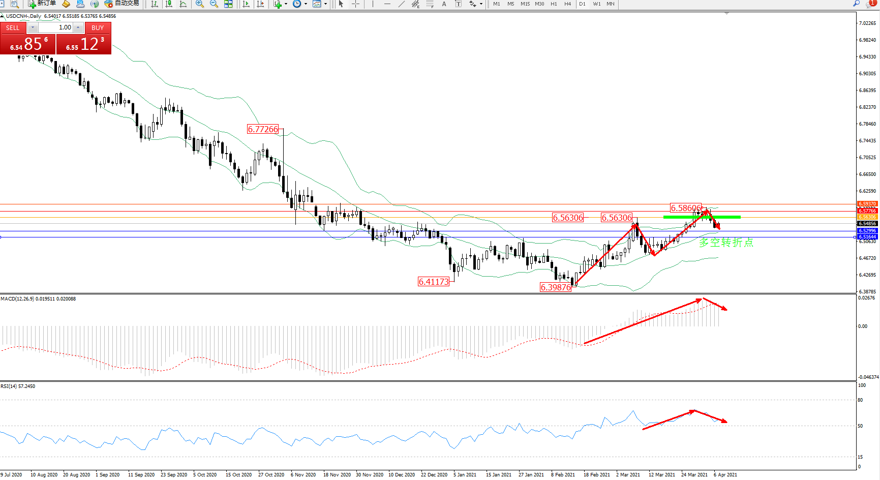 交易策略:6.56306下方看跌,目标6.52996、6.51644