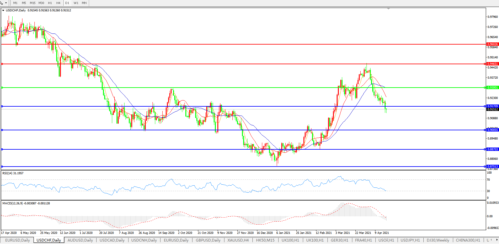 美元兑瑞郎USDCHF 日线图: