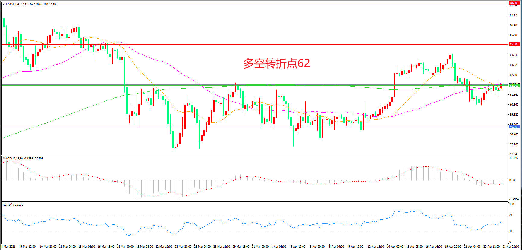 交易策略:在62.00之下看跌,目标59.00 55.00
