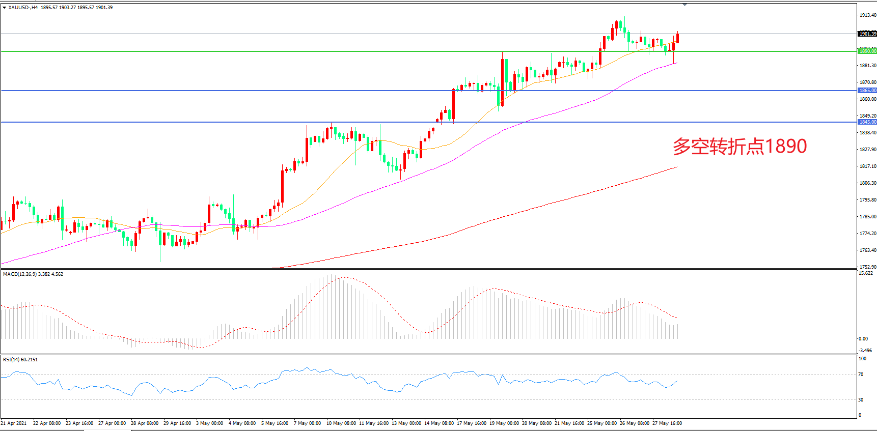 多空转折点:1890.00