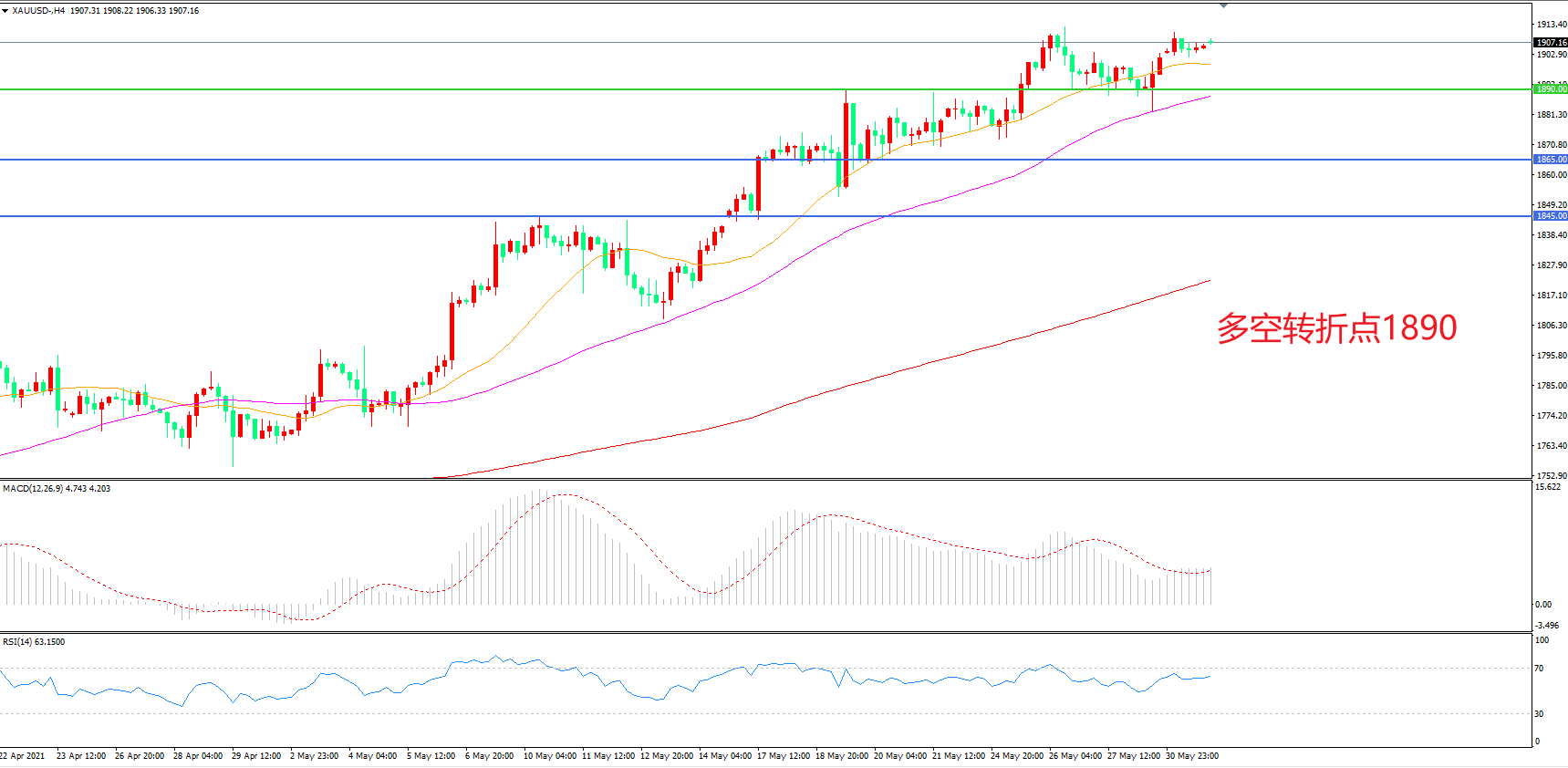 多空转折点:1890.00