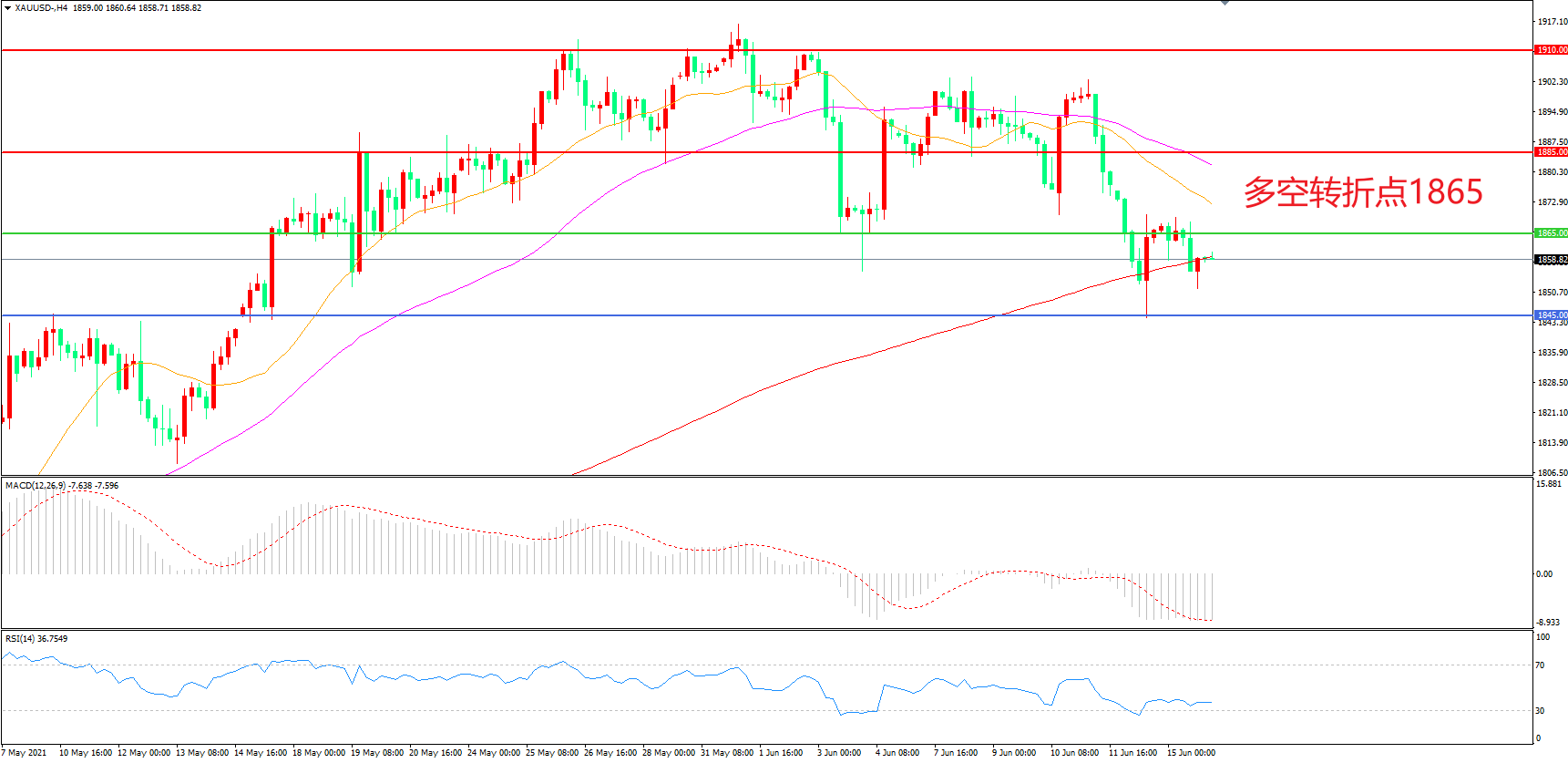 交易策略:在1865.00之下看跌,目标1845.00 1820.00