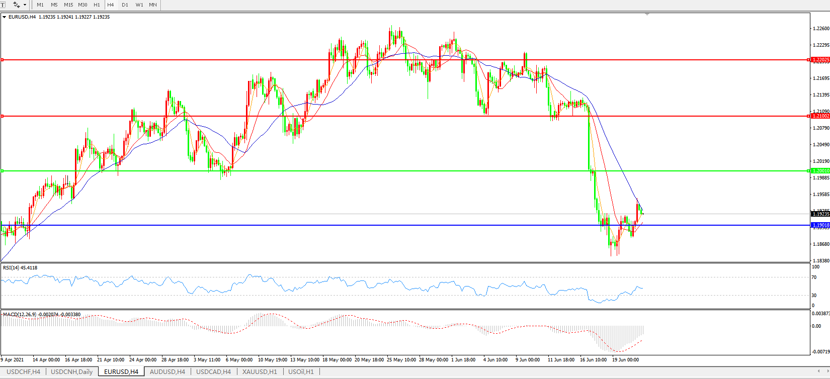 交易策略:1.2000下方看跌,目标1.1900、1.1800