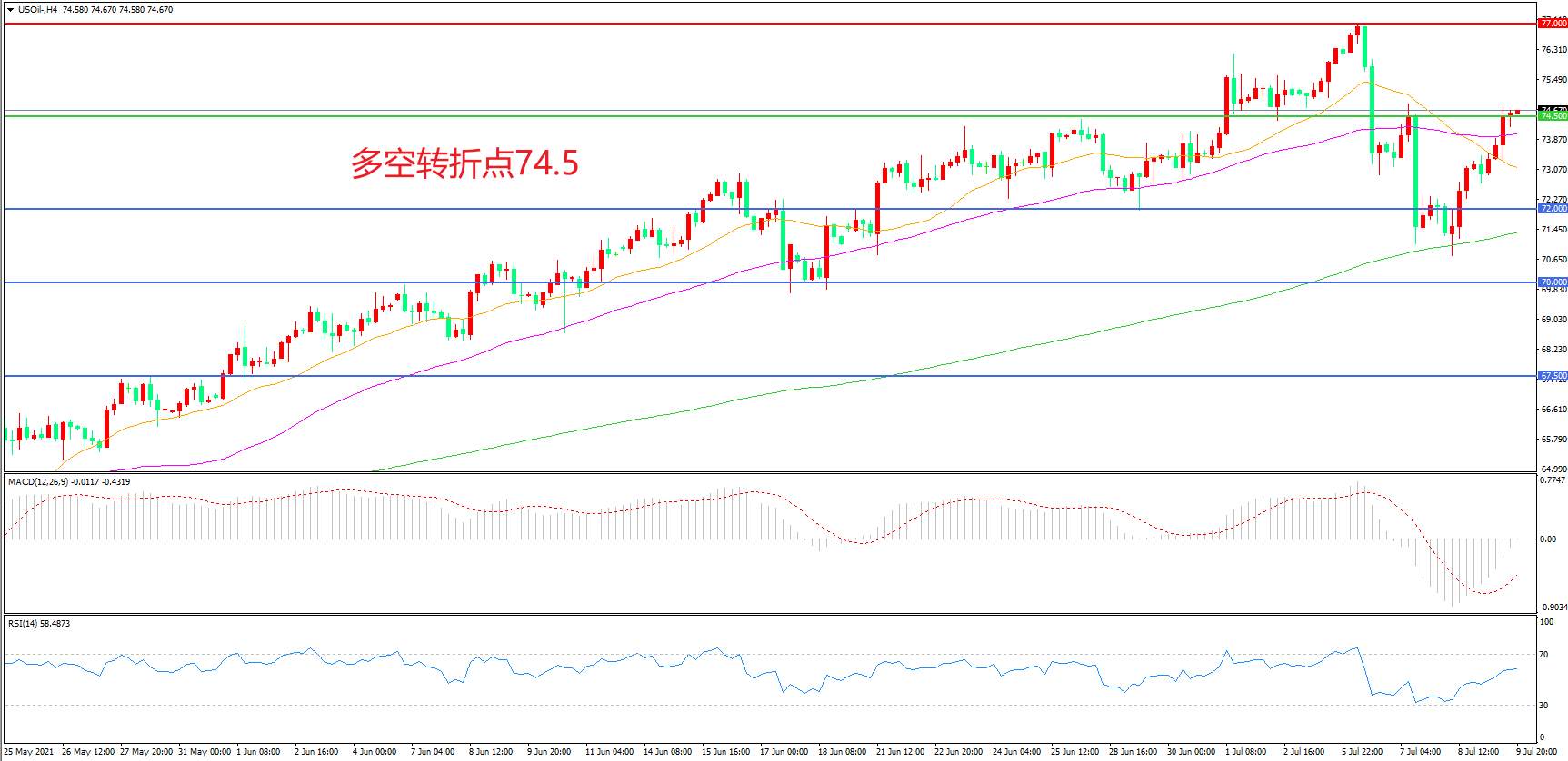 多空转折点:74.50