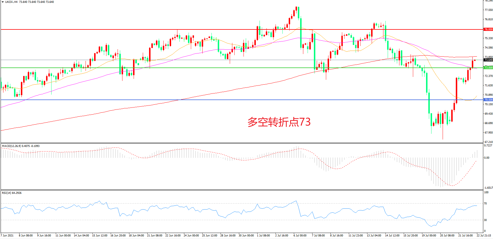 多空转折点:73.00