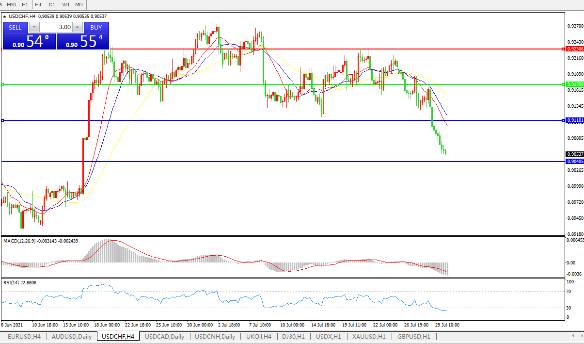 美元兑瑞郎USDCHF 4小时图: