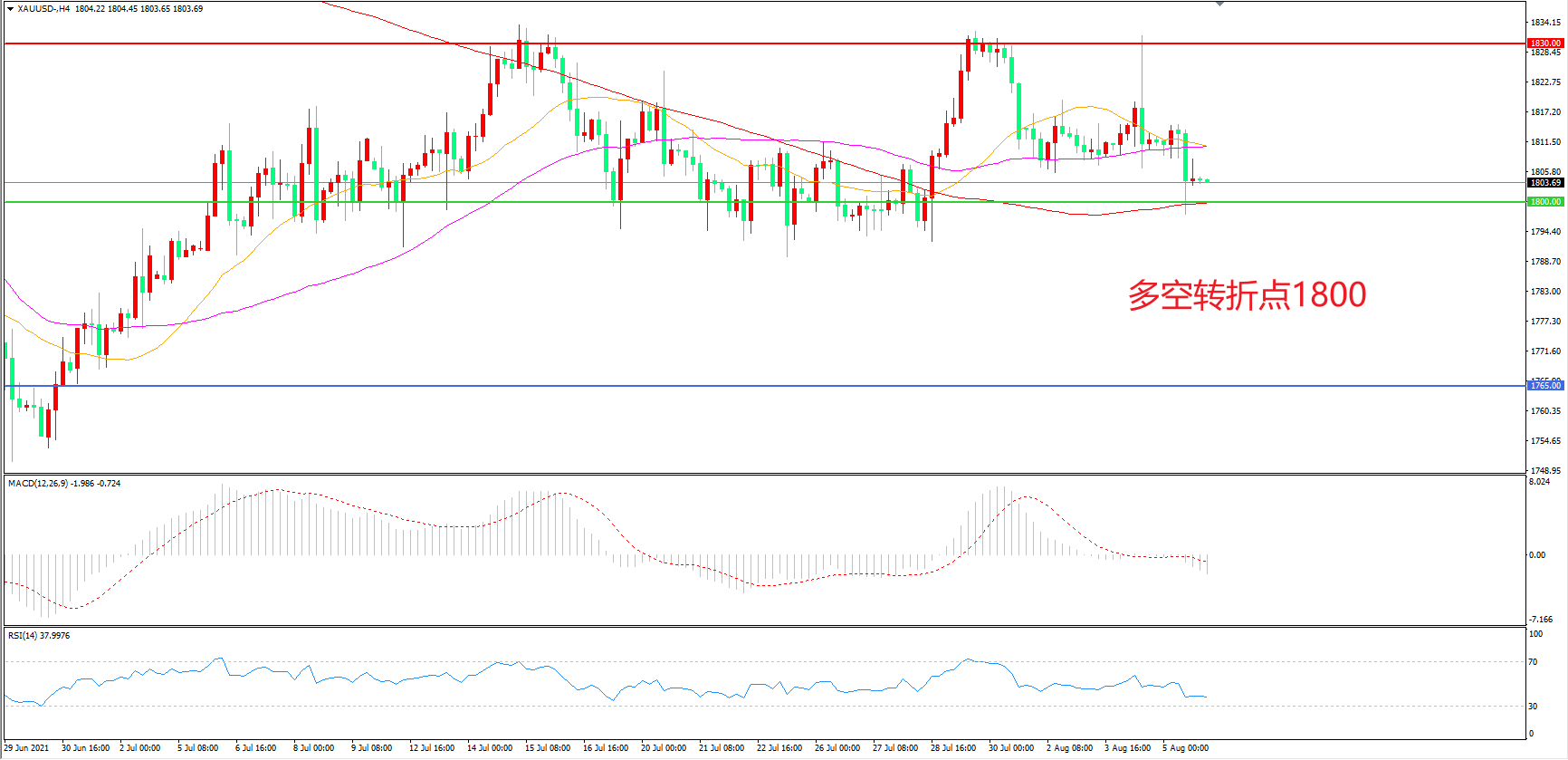 多空转折点:1800.00