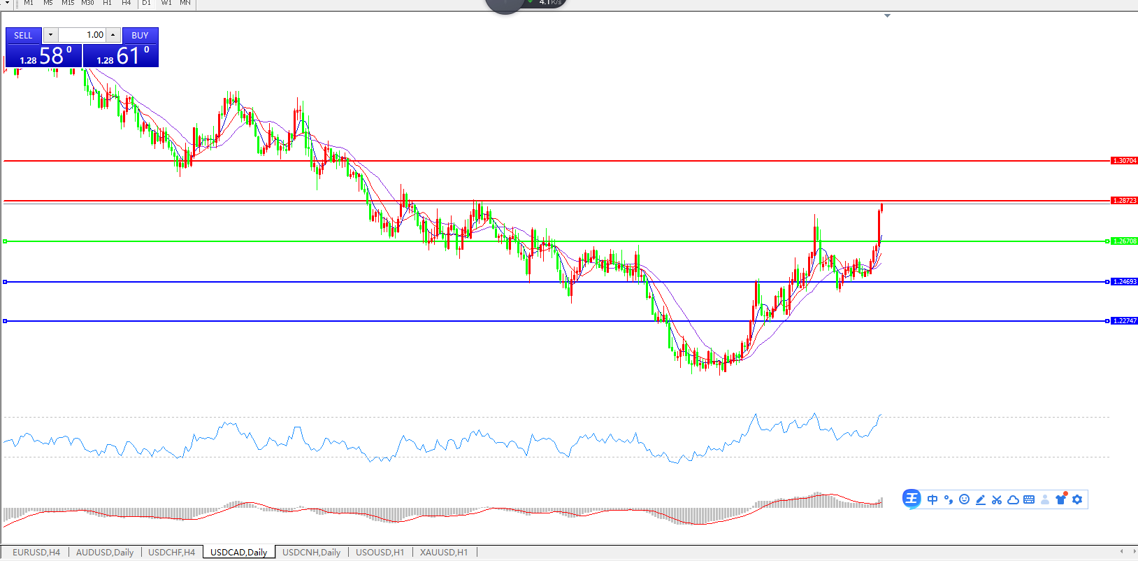 美元兑加元USDCAD    日线图: