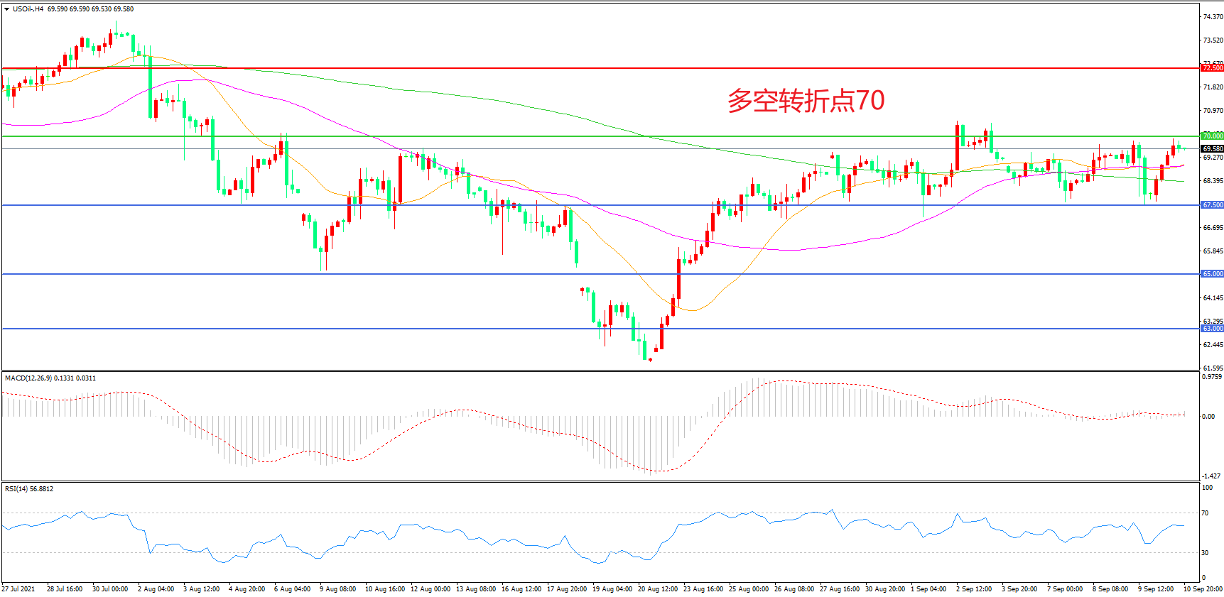 多空转折点:70.00