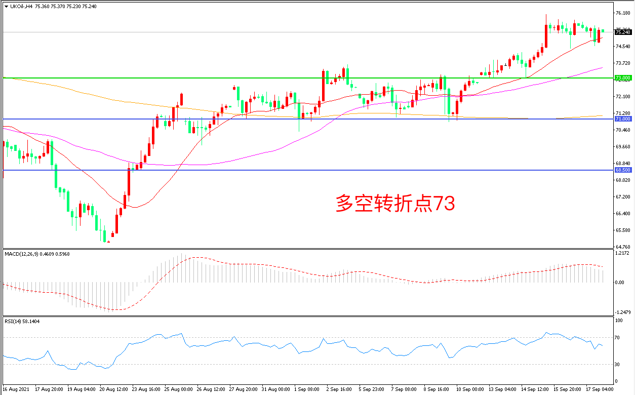 交易策略:在73.00之上看涨,目标75.00 78.00