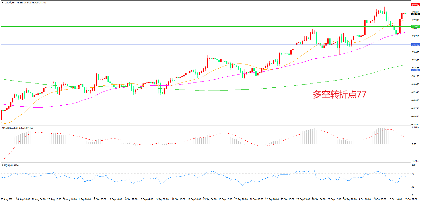 交易策略:在77.00之上看涨,目标80.00                83.00