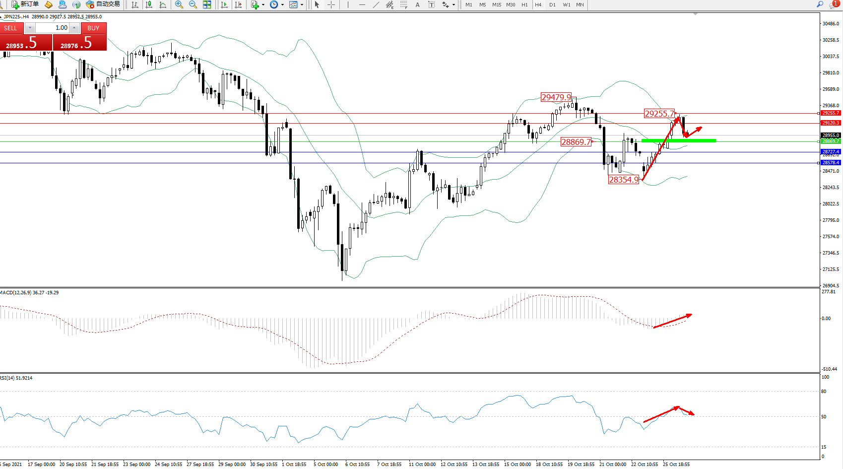 交易策略:28869上方看涨,目标29120、29255