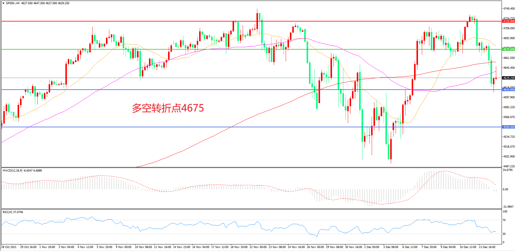 交易策略:在4675.00之下看跌,目标4610.00    4550.00