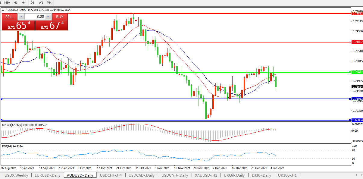 交易策略:0.7240下方看跌,目标0.7100、0.6980