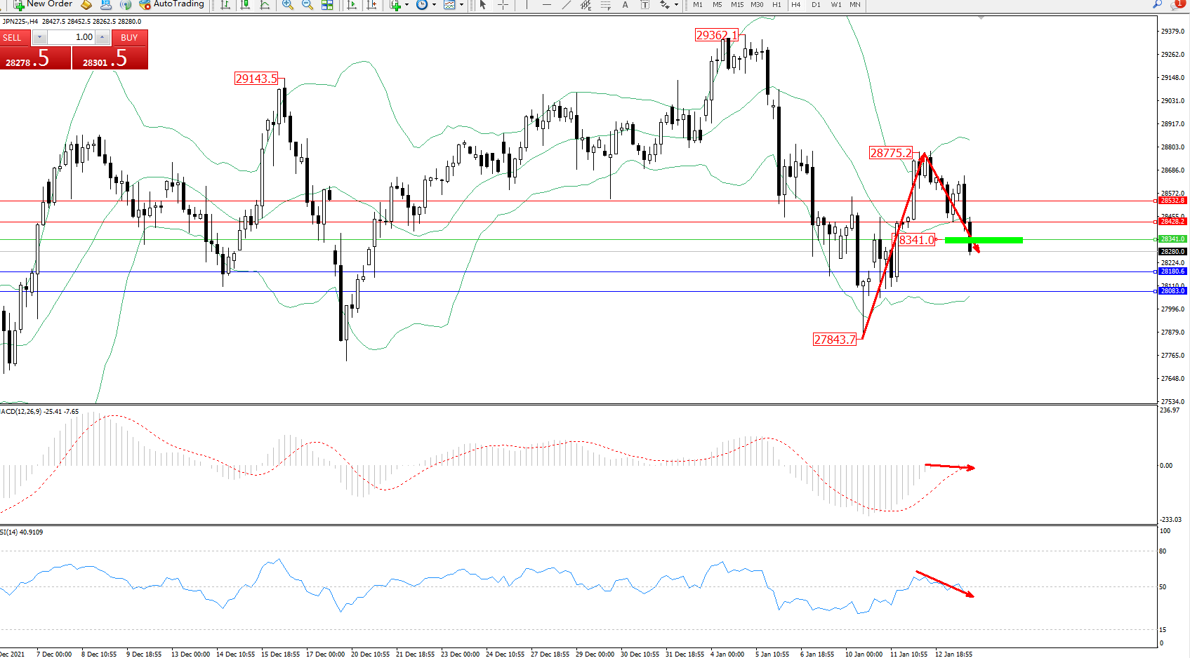 日经指数JPN225——4小时K线图显示: