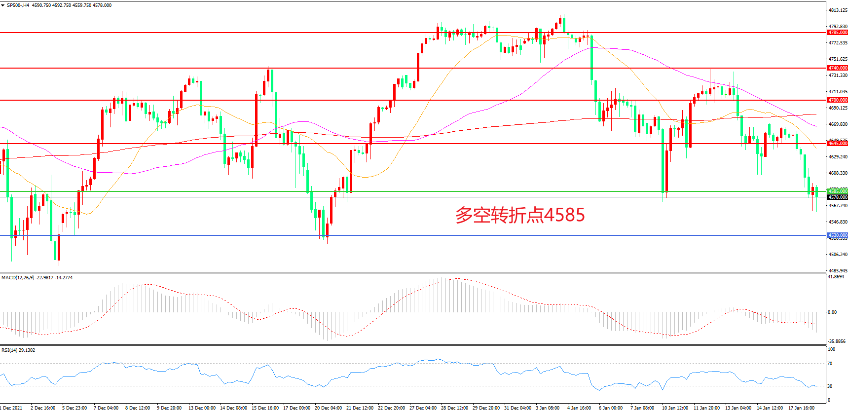 交易策略:在4585.00之下看跌,目标4530.00           4470.00