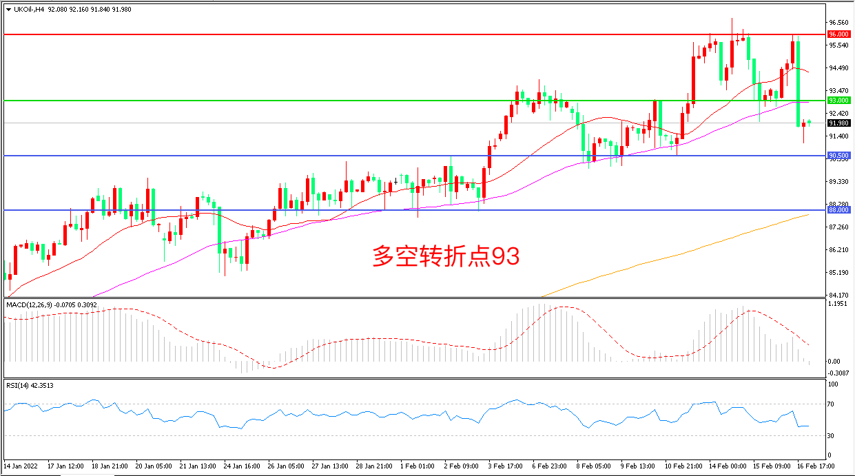 交易策略:在93.00之下看跌,目标90.50 88.00