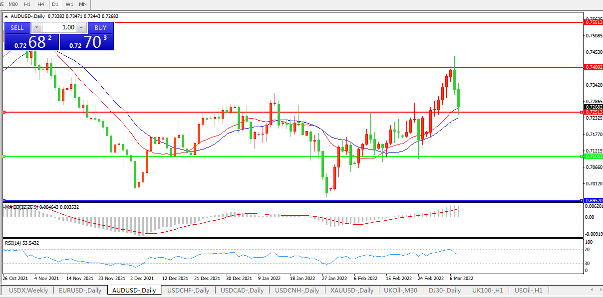 压制位:0.7250 0.7400